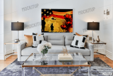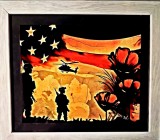 A beautiful scene of our military walking toward the American Flag while a helicopter flies above and poppies in the foreground.